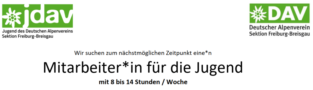 Wir, die Jugend des Deutschen Alpenvereins, kurz JDAV, sind junge bergsport- und kletterbegeisterte Menschen. In der Sektion Freiburg treffen sich aktuell um die 200 Kinder, Jugendliche und junge Erwachsene im Alter von 6 bis 27 Jahren regelmäßig in unseren Jugend- Trainings- und Leistungsgruppen, der JuMa sowie dem Klettertreff für Kinder und Jugendliche.